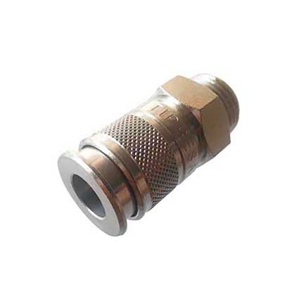 -Ova muška brzo-rastavljajuća spojnica je pogodna za sve vrste instalacija komprimovanog vazduha. Naročito se koristi za povezivanje pneumatskih alata. Napravljena je od niklovanog mesinga. -Proizvođač: AIGNEP (Italija) -Maksimalni dozvoljeni radni pritisak je: 16 bara. -Opseg radne temperature je: od -20 do +80oC. -Preporučeni fluidi: komprimovani vazduh i vakuum.