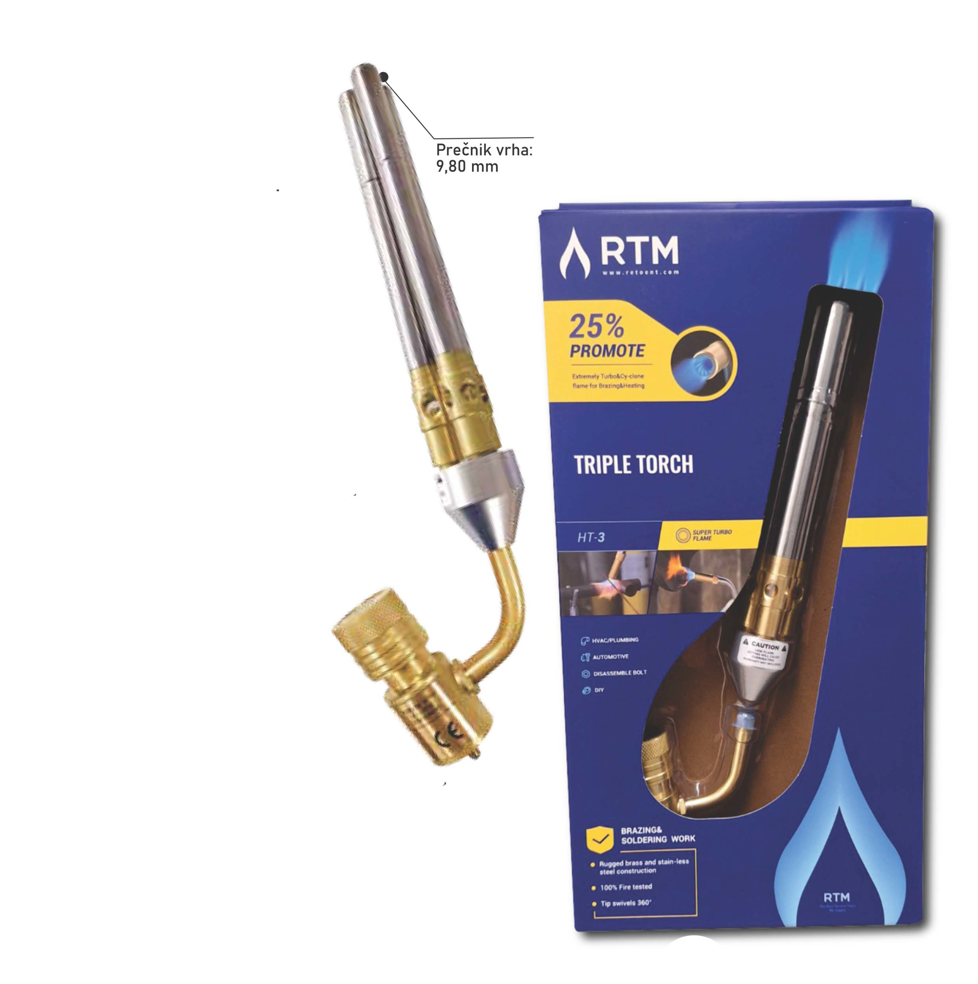 Brener za MAPP gas sa tri cevi HT-3 RTM – profesionalni brener za lemljenje