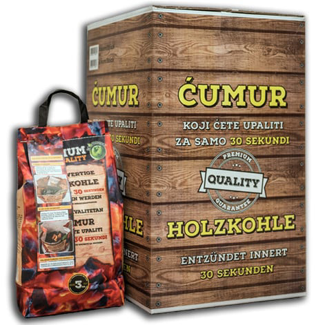 Ćumur samožareći Premium 3 kg sa ekološkim potpaljivačima