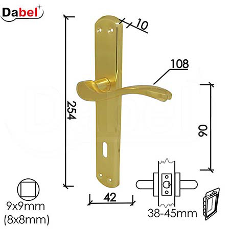 Predviđena je za montažu na drvena vrata debljine 38–45 mm, sa osovinom 9x9 mm.