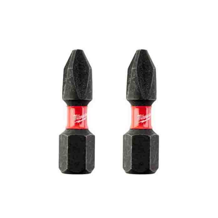 Set od dva krstasta PH2 udarna bitsa Milwaukee Shockwave Impact Duty™, idealna za profesionalnu i intenzivnu upotrebu sa udarnim odvijačima.