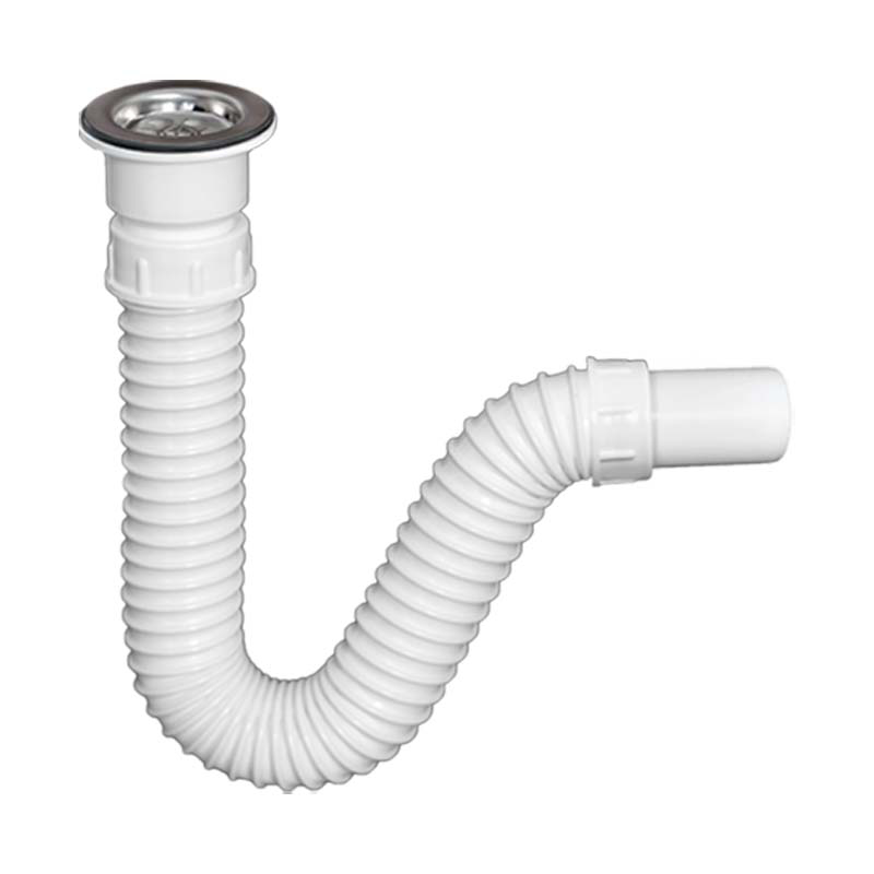 🛁 Fleksibilni sifon za jednodelnu sudoperu Ø60 🌀 PVC cev Ø40 mm glatka iznutra, spiralna spolja 🔄 Ulivno grlo sa rešetkom i zaptivnom gumicom 💧 Prelivno grlo sa zaptivnom gumicom 🔒 Čep sa lančićem za zaptivanje odvoda 🔧 Adapter 40 mm za Ø50 mm i 29/32 mm za 5/4" cev